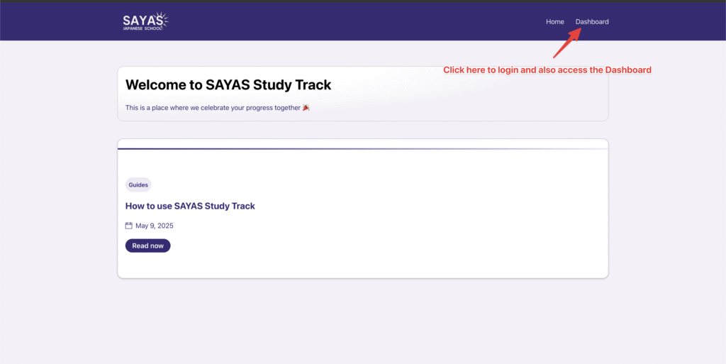 1. Login by clicking on the Dashboard link