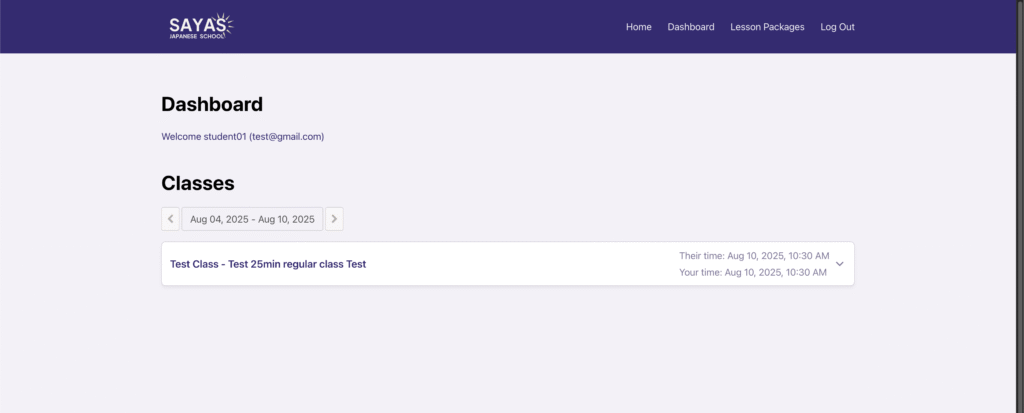 2. See your classes in the Dashboard