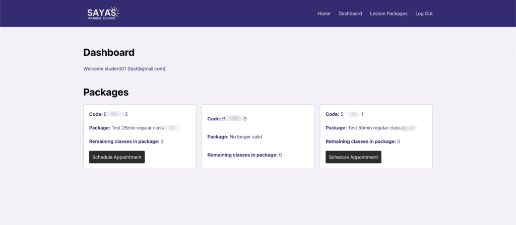 1. Click on Lesson Packages in the Menu to see your packages